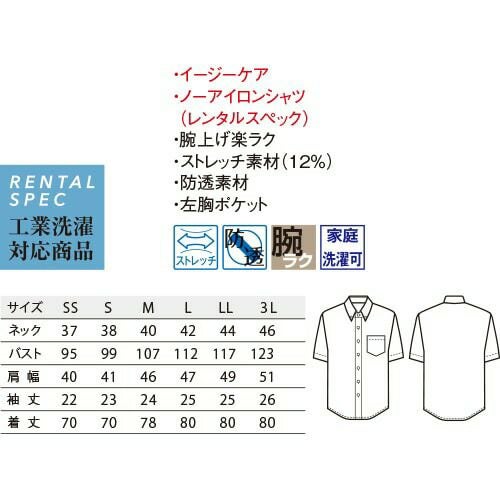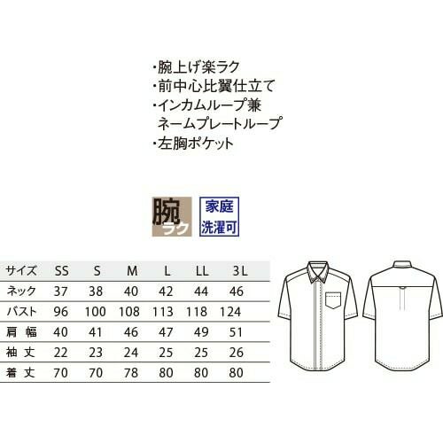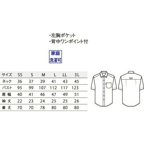 他の画像を見る セブンユニフォーム 業務用 白シャツ ホワイト 黒シャツ ブラック シャツ ブラウス ワイシャツ 抗菌ボタンダウンシャツ 半袖 CH4455 男女兼用 メンズ レディース 抗菌 防臭 おしゃれ 飲食店 制服 ユニフォーム レストラン カフェ かわいい かっこいい 老舗 特別価格 ¥ 4,461 税込 衿、袖丈、色・柄で自由に選ぶ、一人ひとりに似合うシャツシリーズ。 「新定番シャツ」は単に「誰でも着られる」のではなく「それぞれの人に似合う」シャツ。「大は小を兼ねる」より「一人ひとりにフィットする」がコンセプトです。最先端の場面・風景に美しく調和し、誇りを持って働ける。そんな時代に合った仕事着としてのシャツを目指しました。細部の仕様・デザインにこだわった「新定番シャツ」首周りのネック寸は大きすぎず、適度なフィット感で清潔な印象。台衿はネクタイ着用も想定して設計、寸法設定しました。台衿ボタンを外して着用しても、ほどよい開きです。衿の形は飽きがこないよう大きすぎず小さすぎない、クセのないデザインを選択。上品な開きを心がけました。肩巾はジャストなサイズ感で見た目にもスッキリに。袖丈もダボつかず弛みのないジャストな丈感を実現しました。全体のシルエットは、バストはもたつかないサイズ感、ウエストから裾に向けてはややタイトに設定しスッキリした見た目に。裾巾は狭めで、ボトムから出して着てもだらしなく見えません。クセのない使いやすいデザインのポケットや、ノータイでも様になるようデザインした前立てなど、さまざまなコーディネートに対応する為に、細部の仕様・デザインにこだわりました。 詳細を見る お気に入りに登録する
