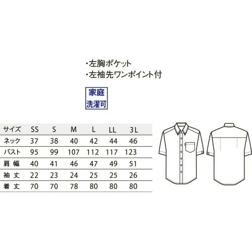 他の画像を見る セブンユニフォーム 業務用 白シャツ ホワイト 黒シャツ ブラック シャツ ブラウス ワイシャツ 抗菌ボタンダウンシャツ 半袖 CH4455 男女兼用 メンズ レディース 抗菌 防臭 おしゃれ 飲食店 制服 ユニフォーム レストラン カフェ かわいい かっこいい 老舗 特別価格 ¥ 4,461 税込 衿、袖丈、色・柄で自由に選ぶ、一人ひとりに似合うシャツシリーズ。 「新定番シャツ」は単に「誰でも着られる」のではなく「それぞれの人に似合う」シャツ。「大は小を兼ねる」より「一人ひとりにフィットする」がコンセプトです。最先端の場面・風景に美しく調和し、誇りを持って働ける。そんな時代に合った仕事着としてのシャツを目指しました。細部の仕様・デザインにこだわった「新定番シャツ」首周りのネック寸は大きすぎず、適度なフィット感で清潔な印象。台衿はネクタイ着用も想定して設計、寸法設定しました。台衿ボタンを外して着用しても、ほどよい開きです。衿の形は飽きがこないよう大きすぎず小さすぎない、クセのないデザインを選択。上品な開きを心がけました。肩巾はジャストなサイズ感で見た目にもスッキリに。袖丈もダボつかず弛みのないジャストな丈感を実現しました。全体のシルエットは、バストはもたつかないサイズ感、ウエストから裾に向けてはややタイトに設定しスッキリした見た目に。裾巾は狭めで、ボトムから出して着てもだらしなく見えません。クセのない使いやすいデザインのポケットや、ノータイでも様になるようデザインした前立てなど、さまざまなコーディネートに対応する為に、細部の仕様・デザインにこだわりました。 詳細を見る お気に入りに登録する