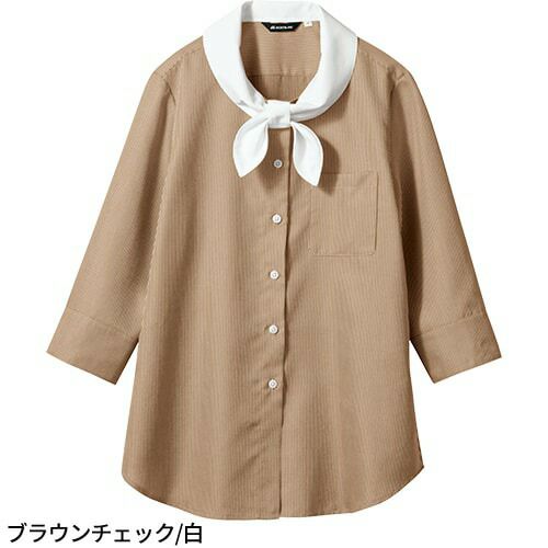 他の画像を見る シャツ クレリックカラー ドレスシャツ ワイシャツ 住商モンブラン ブラウス 7分袖 七分袖 WC2231-4・5・7 飲食店 制服 ユニフォーム レディース レストラン カフェ おしゃれ かわいい 可愛い リボン 特別価格 ¥ 5,006 税込 細やかなチェックが上品な印象のシャツシリーズ。白い襟が目を引く、クレリックシャツ。 清潔感あふれる白が顔まわりをパッと明るく見せ、大きめのリボンの可愛らしさたっぷり。■ウインカーチェックとは汗を素早く吸収・拡散する綿100%。形態安定性に優れ、ハリコシのあるポリエステルフィラメントを交互に組み合わせた複合素材。 詳細を見る お気に入りに登録する