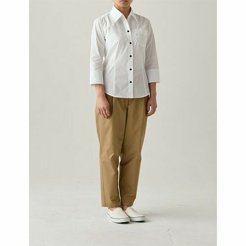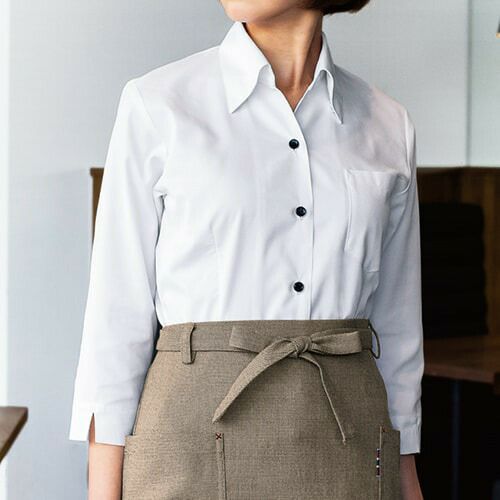 他の画像を見る セブンユニフォーム 業務用 白シャツ ホワイト ブラウス ワイシャツ スキッパーカラーシャツ 七分袖 WH7613 オープンカラー 7分袖 女性用 レディース おしゃれ 飲食店 制服 ユニフォーム レストラン カフェ かわいい ブランド 老舗 特別価格 ¥ 4,840 税込 開放的でありつつ、きちんと映る襟元に。 台襟ボタンがないことで、開放感のある「スキッパーカラー」。その特長を活かしながら、ホスピタリティを表現するためカッティングにもこだわっています。美しいサービスに合う、リラックス感のある襟元です。 詳細を見る お気に入りに登録する