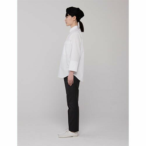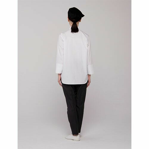 他の画像を見る セブンユニフォーム 業務用 白シャツ ホワイト シャツ ブラウス ワイシャツ シャツコート 長袖 QA7370 男女兼用 メンズ レディース 綿100 制菌 制電 ストレッチ 動きやすい おしゃれ 飲食店 制服 ユニフォーム レストラン カフェ かわいい かっこいい 老舗 特別価格 ¥ 7,343 税込 薄く丈夫な新開発素材「ライトツイル」 厨房内は火だけでなく、設備熱や人の熱気など、様々な理由からとても暑い環境です。「出来るだけ涼しいコックコートが欲しい」というリアルな現場の皆様のお声から生まれたのがこの「涼感コックコート シリーズ」。暑さに対応するため生地を薄く、通気性を良くすることで懸念されたのがリネン洗濯への耐久性。“涼しく”て“洗濯耐久性”が有る、この2つの条件をクリアする新素材として開発に成功したのが「ライトツイル [ポリエステル70%・綿30%]」という生地です。耐久性の高い素材は通常ポリエステル高混率であることが多いのですが、新開発のライトツイルは綿リッチな素材。着心地が良く、見た目もナチュラルな風合いの生地となりました。細部のデザインにもこだわり、通常より小さな組み紐ボタンを付けるなど、ワークスタイルを残しつつもエレガントな雰囲気を漂わせるシリーズとなっています。薄手の生地ですが防透・UVカット加工を施しているので、薄手でも肌着が透ける心配もなく、汗をかきやすい夏場や暑い場所でも安心です。薄手でありながら耐久性を備えた「涼感コックコート シリーズ」は、蒸し暑い厨房や、夏場のオープンキッチンなどで働くスタッフに最適なアイテムです。ぜひ一度袖を通して、その涼しさ・着心地を体感してください。 詳細を見る お気に入りに登録する