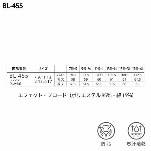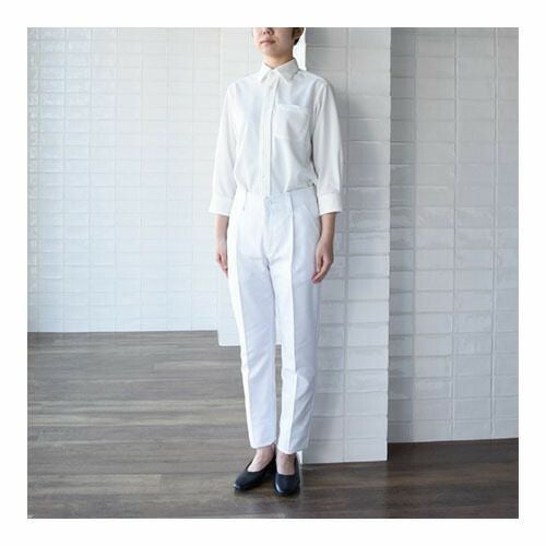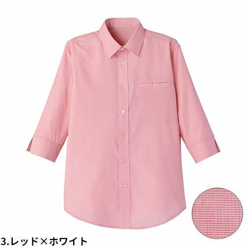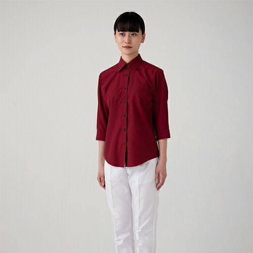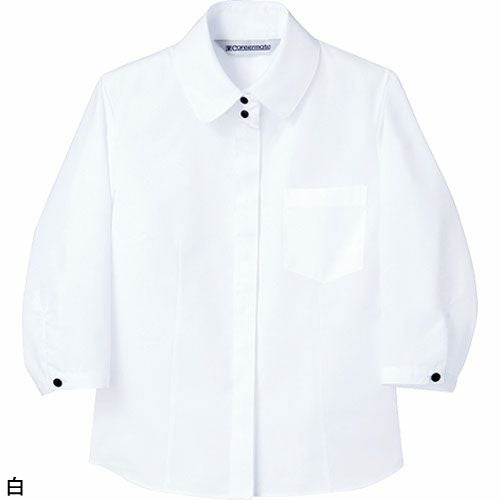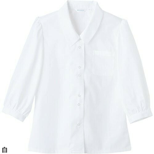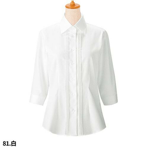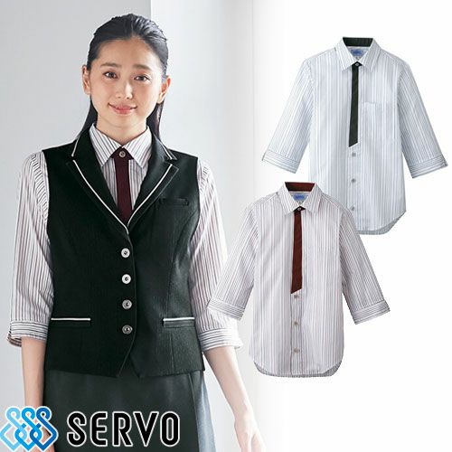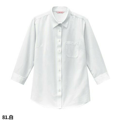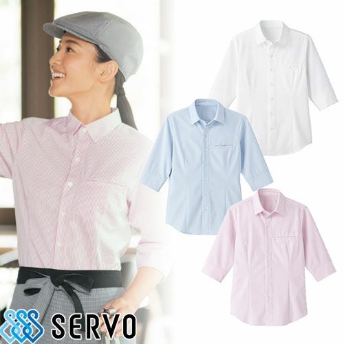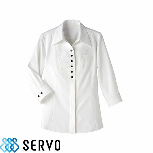 白シャツ ホワイト ワイシャツ レギュラーカラー BL-455 サーヴォ Servo 7分袖 女性用 事務 オフィス ビジネス フォーマル 飲食店 制服 ユニフォーム レディース レストラン カフェ おしゃれ かわいい おもてなし 清潔 防透 防汚 ブラウス