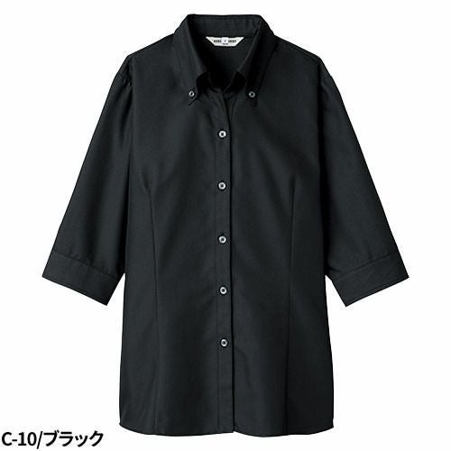 白シャツ ホワイト 黒シャツ ブラック ワイシャツ レギュラーカラー チトセ アルベ arbe 七分袖ブラウス BL-8057 飲食店 制服 ユニフォーム レディース レストラン カフェ おしゃれ かわいい7分袖 女性用 事務 オフィス ビジネス フォーマル