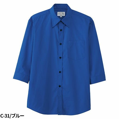 シャツ ワイシャツ レギュラーカラー SBSU-1810 サーヴォ Servo 7分袖 男女兼用 事務 オフィス ビジネス フォーマル 飲食店 制服 ユニフォーム メンズ レディース レストラン カフェ おしゃれ かわいい かっこいい 白 青