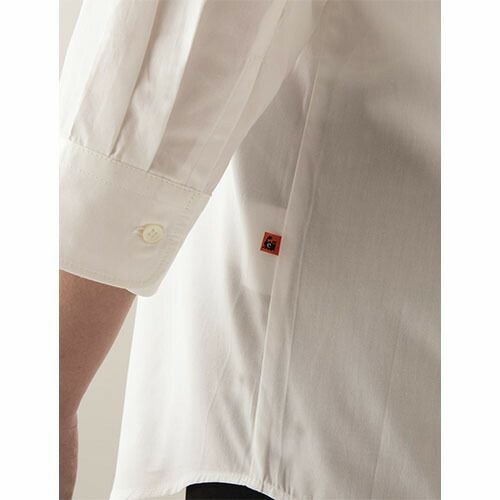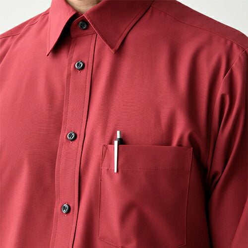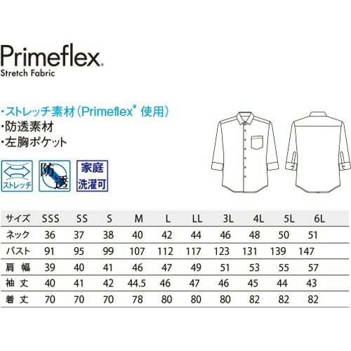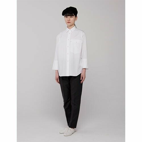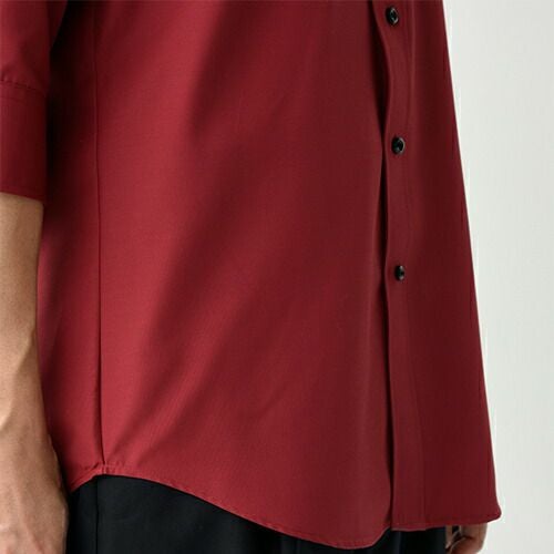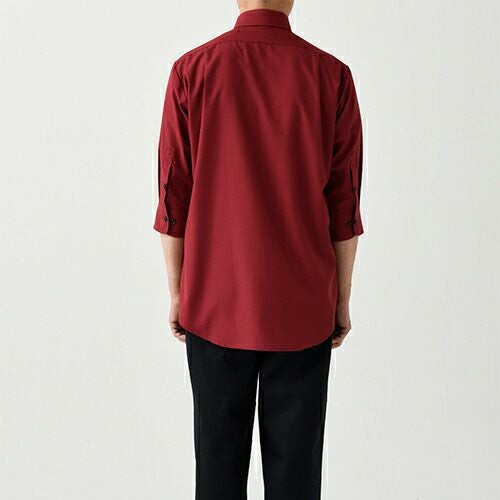 あらゆる業種に対応するリーズナブルな価格のベーシックシャツ 細身でも動きやすく、着崩れしないシルエットが魅力のベーシックシャツ。1枚で着ても美しく、エプロンやベストを重ねてももたつきません。ネクタイの有り・無しどちらでも印象の良い小ぶりな衿で幅広いシーンで着用可能な汎用性の高い7分袖シャツです。