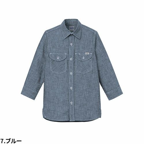 飲食店ユニフォーム メンズ レギュラーカラー Lee メンズシャンブレー七分袖シャツ LCS46004 七分丈 男性用 制服 レストラン カフェ サービス業 デニム おしゃれ シンプル スタイリッシュ
