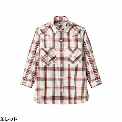 飲食店ユニフォーム レディース レギュラーカラー Lee レディスウエスタンチェック七分袖シャツ LCS43007 七分丈 女性用 制服 レストラン カフェ サービス業 デニム おしゃれ シンプル スタイリッシュ