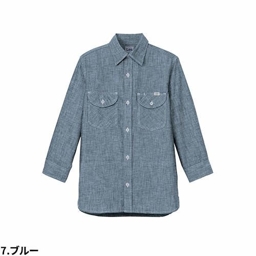 飲食店ユニフォーム レディース レギュラーカラー Lee レディスシャンブレー七分袖シャツ LCS43004 七分丈 女性用 制服 レストラン カフェ サービス業 デニム おしゃれ シンプル スタイリッシュ
