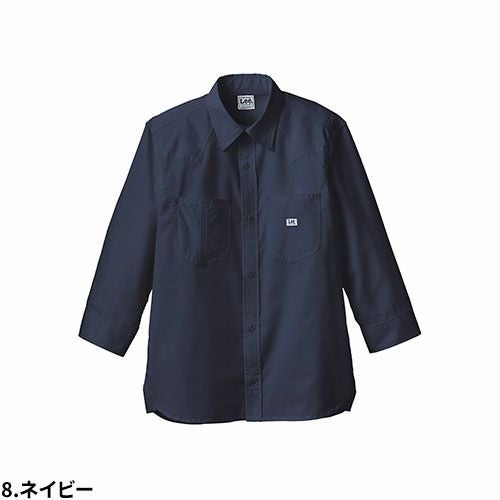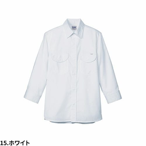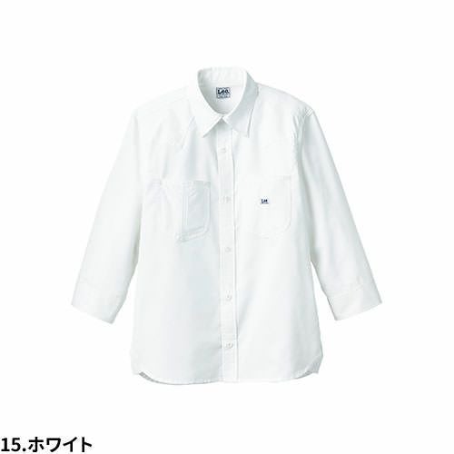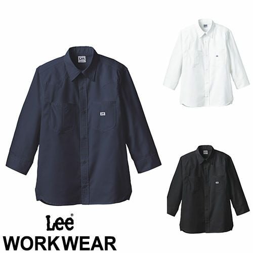 白シャツ ホワイト 黒シャツ ブラック メンズ レディース レギュラーカラー Lee ユニセックス 七分袖シャツ LCS49002 七分丈 男女兼用 ユニセックス 制服 レストラン カフェ サービス業 デニム おしゃれ シンプル スタイリッシュ