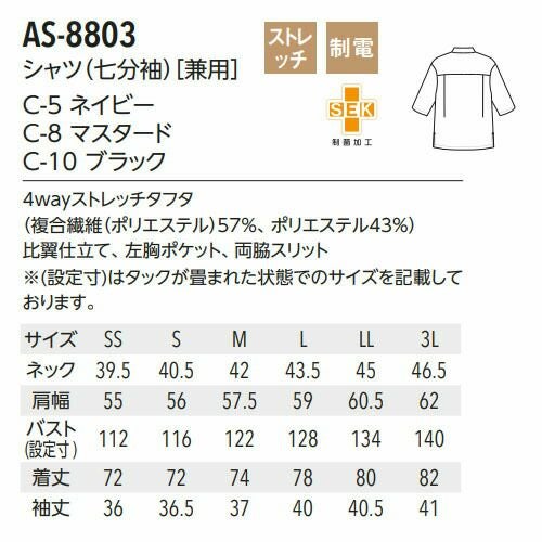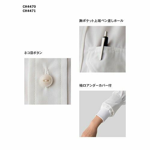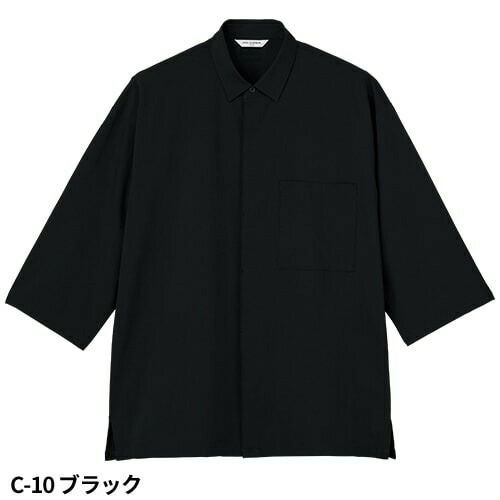 セブンユニフォーム 業務用 白シャツ ホワイト 黒シャツ ブラック シャツ ブラウス ワイシャツ 八分袖 袖口アンダーカバー付 CH4471 男女兼用 メンズ レディース 制電 抗ウイルス おしゃれ 飲食店 制服 ユニフォーム レストラン カフェ かわいい かっこいい