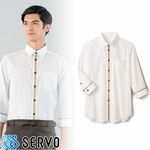 シャツ ワイシャツ レギュラーカラー SBSU-1811 サーヴォ Servo 7分袖 男女兼用 事務 オフィス ビジネス フォーマル 飲食店 制服 ユニフォーム メンズ レディース レストラン カフェ おしゃれ かわいい かっこいい 白