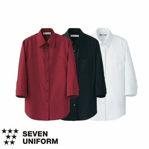 セブンユニフォーム 業務用 白シャツ ホワイト シャツ ブラウス ワイシャツ シャツ 七分袖 QH7351 7分袖 男女兼用 メンズ レディース 綿100 おしゃれ 飲食店 制服 ユニフォーム レストラン カフェ かわいい かっこいい ブランド 老舗