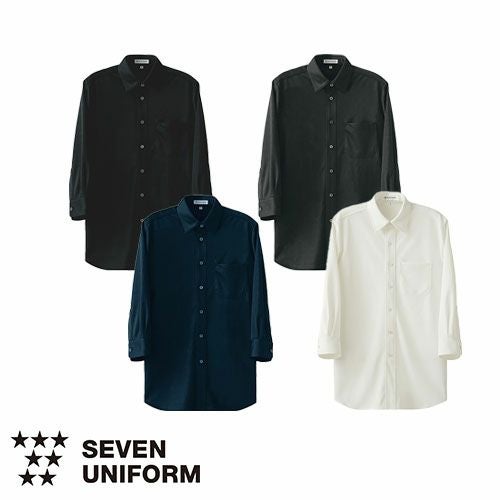 セブンユニフォーム 業務用 白シャツ ホワイト 黒シャツ ブラック シャツ ブラウス ワイシャツ ニットシャツ 七分袖 CH4494 7分袖 男女兼用 メンズ レディース 防臭 吸水 速乾 おしゃれ 飲食店 制服 ユニフォーム レストラン カフェ かわいい かっこいい
