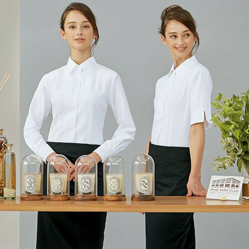 他の画像を見る 白シャツ ホワイト ワイシャツ レギュラーカラー 住商モンブラン ブラウス 5分袖 BK2162-2 飲食店 制服 ユニフォーム レディース レストラン カフェ おしゃれ かわいい女性用 事務 オフィス ビジネス フォーマル 特別価格 ¥ 3,743 税込 シンプルな中にも、こだわりを感じさせるプレーンシャツシリーズ。 素材感が美しい、やわらかな風合いのシンプルブラウス。袖口スリットで腕の動きがスムーズ。 詳細を見る お気に入りに登録する