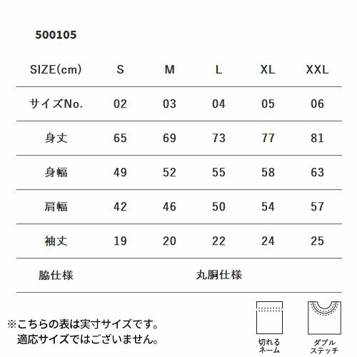 他の画像を見る Tシャツ 綿 100% カットソー United Athle ユナイテッドアスレ 5.6オンス ハイクオリティー Tシャツ(ティア アウェイ タグ) 500105 男女兼用 おしゃれ かわいい 可愛い かっこいい 丈夫 快適 天然素材 コットン 優しい肌触り 無地 シンプル 刺繍 名入れ 大きいサイズ 特別価格 ¥ 750 税込 〜 特別価格 ¥ 税込 ロングセラーTシャツに切れる襟ネーム仕様モデルが遂に登場 長く待ち望まれていた、500101の「切れるネームタイプ」を遂にリリース!襟ネームに手で簡単に切り取ることのできる素材を採用し、オリジナルネームへの付け替えやネームデザインのプリントが容易にできるようになりました。ボディは500101と同じ仕様のため「毛羽が少ない」「肌ざわりがよい」「プリントのりがきれい」といった「5001クオリティー」はそのまま。シルエットはアメリカンライクの王道ボックススタイルなので、流行に左右されずに幅広いスタイリングにマッチ。かゆいところに手が届く、オリジナルアイテム制作に欠かすことのできないプロダクトの誕生です。 詳細を見る お気に入りに登録する