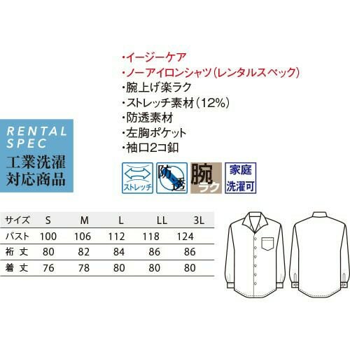白シャツ ホワイト ワイシャツ レギュラーカラー ボンユニ BONUNI ボストン 長袖シャツ 34206-81 飲食店 制服 ユニフォーム レディース レストラン カフェ おしゃれ かわいい女性用 事務 オフィス ビジネス フォーマル