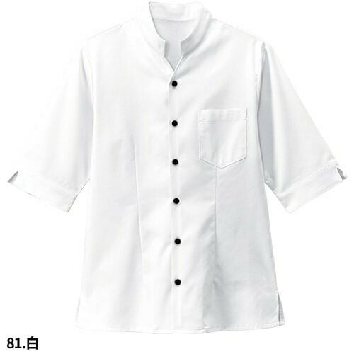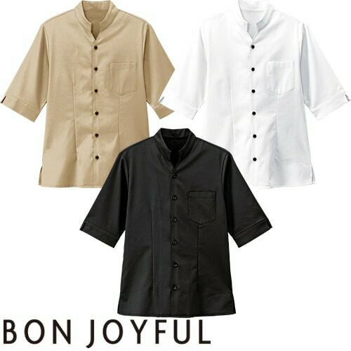 白シャツ ホワイト 黒シャツ ブラック スタンドカラー 立ち襟 制服 ユニフォーム ボンユニ BONUNI ボストン 七分袖スタンドカラーシャツ 34310 飲食店 メンズ レディース レストラン カフェ 厨房 中華 おしゃれ かわいい かっこいい7分袖 男女兼用 定番 無地