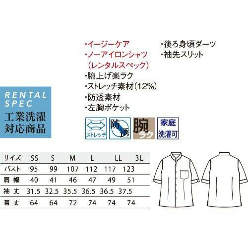 白シャツ ホワイト ワイシャツ レギュラーカラー FACEMIX フェイスミックス 吸汗速乾半袖ブラウス FB4014L 飲食店 制服 ユニフォーム レディース レストラン カフェ おしゃれ かわいい女性用 事務 オフィス ビジネス フォーマル