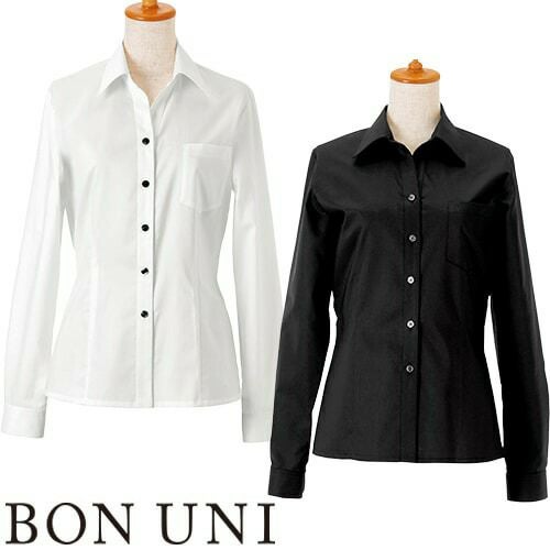 白シャツ ホワイト 黒シャツ ブラック ワイシャツ レギュラーカラー ボンユニ BONUNI ボストン 長袖シャツ 24214-81 24214-99 飲食店 制服 ユニフォーム レディース レストラン カフェ おしゃれ かわいい女性用 事務 オフィス ビジネス フォーマル