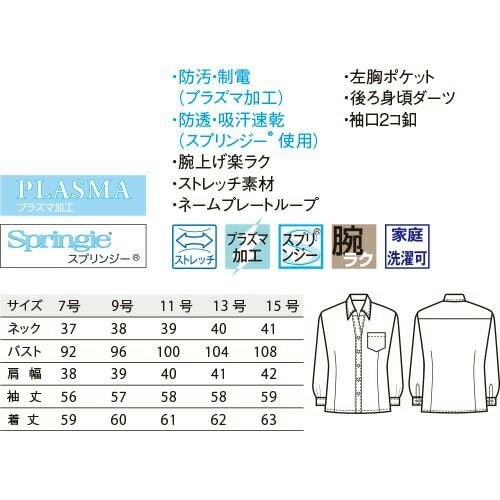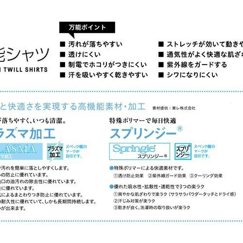飲食の現場にうれしい高機能加工が施されたスタイリッシュなシャツ。扱いやすさとデザイン性が人気のロングセラーシャツです。