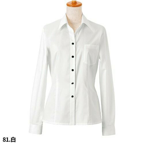 白シャツ ホワイト ワイシャツ レギュラーカラー ボンユニ BONUNI ボストン 長袖シャツ 14207-81 飲食店 制服 ユニフォーム レディース レストラン カフェ おしゃれ かわいい女性用 事務 オフィス ビジネス フォーマル