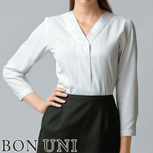 白シャツ ホワイト ワイシャツ レギュラーカラー ボンユニ BONUNI ボストン 七分袖シャツ 24225-81 飲食店 制服 ユニフォーム レディース レストラン カフェ おしゃれ かわいい7分袖 女性用 事務 オフィス ビジネス フォーマル