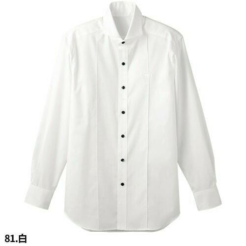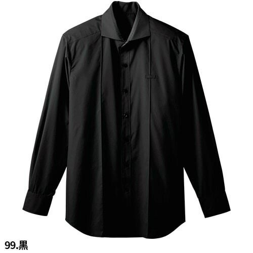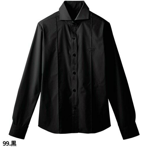 白シャツ ホワイト 黒シャツ ブラック ワイシャツ ワイドカラー ボンユニ BONUNI ボストン 長袖ホリゾンタルカラーシャツ 24115-81 24115-99 飲食店 制服 ユニフォーム メンズ レストラン カフェ おしゃれ かっこいい男性用 事務 オフィス ビジネス フォーマル