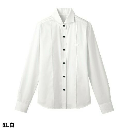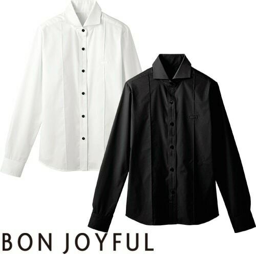 白シャツ ホワイト 黒シャツ ブラック ワイシャツ ワイドカラー ボンユニ BONUNI ボストン 長袖ホリゾンタルカラーシャツ 24215-81 24215-99 飲食店 制服 ユニフォーム レディース レストラン カフェ おしゃれ かわいい女性用 事務 オフィス ビジネス フォーマル