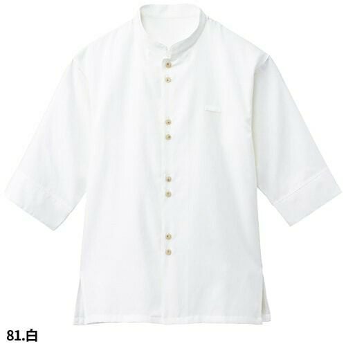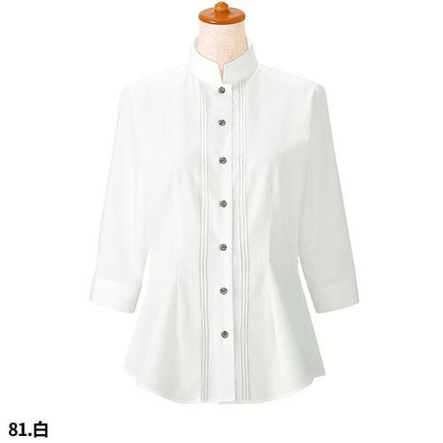 白シャツ ホワイト スタンドカラー 立ち襟 制服 ユニフォーム ボンユニ BONUNI ボストン 七分袖スタンドカラーシャツ 24224-81 飲食店 レディース レストラン カフェ 厨房 中華 おしゃれ かわいい7分袖 女性用 定番 無地