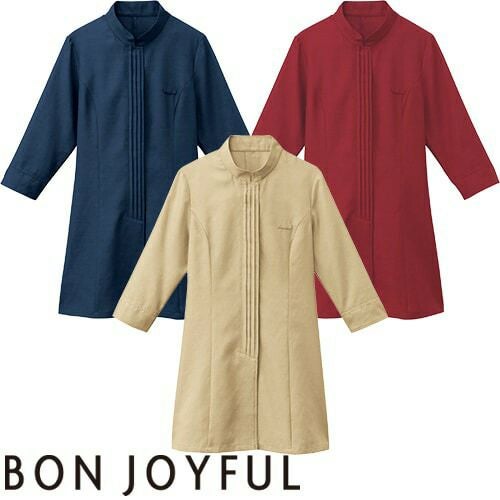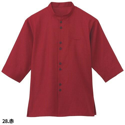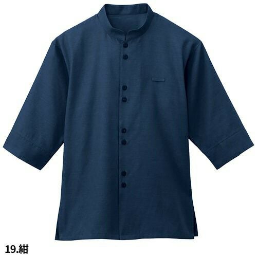 シャツ スタンドカラー 立ち襟 制服 ユニフォーム ボンユニ BONUNI ボストン 七分袖スタンドカラーシャツ 24242-15 飲食店 レディース レストラン カフェ 厨房 中華 おしゃれ かわいい7分袖 女性用 定番 無地