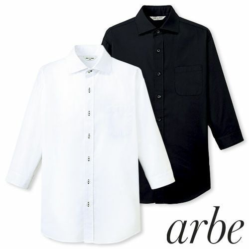 白シャツ ホワイト 黒シャツ ブラック ワイシャツ ワイドカラー チトセ アルベ arbe 七分袖ワイドカラーシャツ EP-7822 飲食店 制服 ユニフォーム メンズ レディース レストラン カフェ おしゃれ かわいい かっこいい7分袖 男女兼用 事務 オフィス ビジネス フォーマル