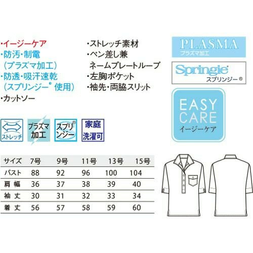 シャツ ワイシャツ ワイドカラー チトセ アルベ arbe レディース 七分袖ブラウス EP-7914 飲食店 制服 ユニフォーム レディース レストラン カフェ おしゃれ かわいい7分袖 女性用 事務 オフィス ビジネス フォーマル