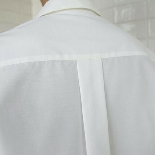 落ち着いたモノトーンスタイルを襟のラインでモダンな雰囲気に 黒と白のシャツにさりげないアクセントを加えました。モノトーンスタイルを簡単にブラッシュアップすることが可能なモダンさが自慢の一着です。