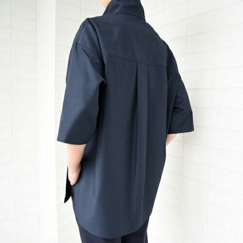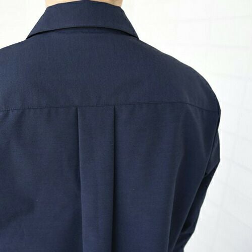 定番シンプルなブラックシャツをより動きやすくスマートにブラッシュアップ 汎用性の高い七分袖のシャツ。後ヨーク切替にタックが入っています。左胸にパッチポケット、袖口はカフス付きです。前立て下部には替えボタン付き。