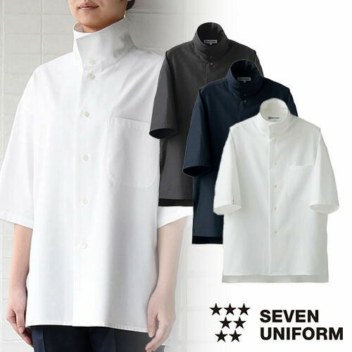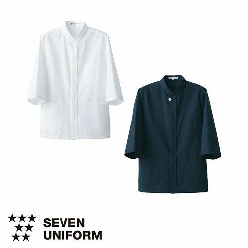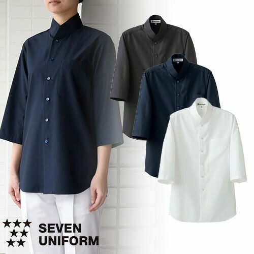 セブンユニフォーム 業務用 シャツ ブラウス ワイシャツ コート 五分袖 BA1224 スタンドカラー 5分袖 男女兼用 メンズ レディース 吸水 速乾 形態安定 シワになりにくい おしゃれ 飲食店 レストラン カフェ 厨房 中華 かわいい かっこいい ブランド 老舗