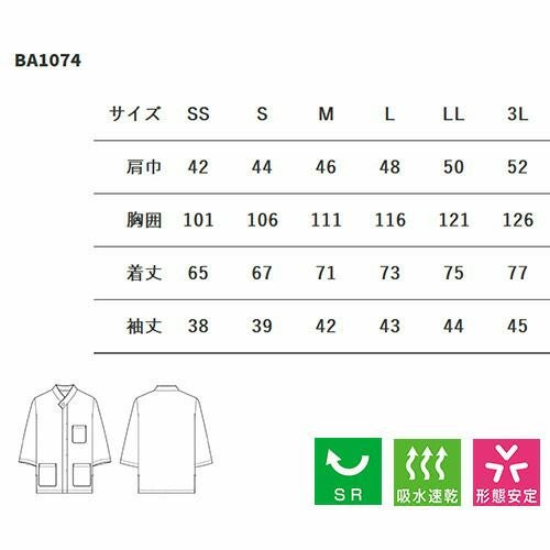 セブンユニフォーム 業務用 白シャツ ホワイト シャツコート 七分袖 BA1073 7分袖 男女兼用 メンズ レディース 汚れ 落としやすい 吸水 速乾 形態安定 シワになりにくい おしゃれ 飲食店 カフェ レストラン かわいい かっこいい ブランド 老舗