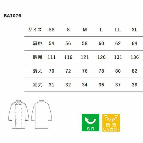セブンユニフォーム 業務用 白シャツ ホワイト コート 七分袖 BA1076 7分袖 男女兼用 メンズ レディース 汚れ 落としやすい 防透 透けにくい UVカット おしゃれ 飲食店 カフェ レストラン かわいい かっこいい ブランド 老舗