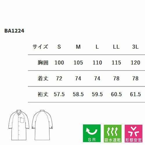 セブンユニフォーム 業務用 白シャツ ホワイト コート 七分袖 BA1074 7分袖 男女兼用 メンズ レディース 汚れ 落としやすい 吸水 速乾 形態安定 シワになりにくい おしゃれ 飲食店 カフェ レストラン かわいい かっこいい ブランド 老舗