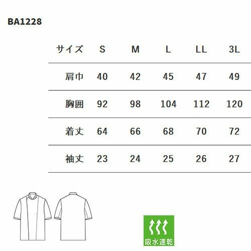 セブンユニフォーム 業務用 シャツ ブラウス ワイシャツ コート 五分袖 BA1222 5分袖 男女兼用 メンズ レディース 吸水 速乾 形態安定 シワになりにくい おしゃれ 飲食店 制服 ユニフォーム レストラン カフェ かわいい かっこいい ブランド 老舗
