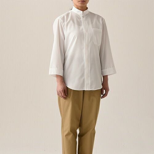 セブンユニフォーム 業務用 白シャツ ホワイト シャツ ブラウス ワイシャツ シャツ 七分袖 CH1589 スタンドカラー 7分袖 男女兼用 メンズ レディース 速乾 形態安定 シワになりにくい おしゃれ 飲食店 レストラン カフェ 厨房 中華 かわいい かっこいい