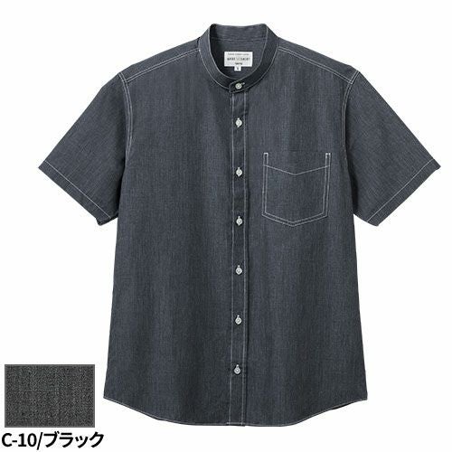 黒シャツ ブラック スタンドカラー 立ち襟 制服 ユニフォーム チトセ アルベ arbe シャツ(半袖)[兼用] EP8905 飲食店 メンズ レディース レストラン カフェ 厨房 中華 おしゃれ かわいい かっこいい男女兼用 定番 無地