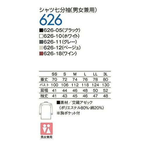 シャツ ワイシャツ レギュラーカラー BT3121 BT3122 サーヴォ Servo 7分袖 男女兼用 事務 オフィス ビジネス フォーマル 飲食店 制服 ユニフォーム メンズ レディース レストラン カフェ おしゃれ かわいい かっこいい クールビズ