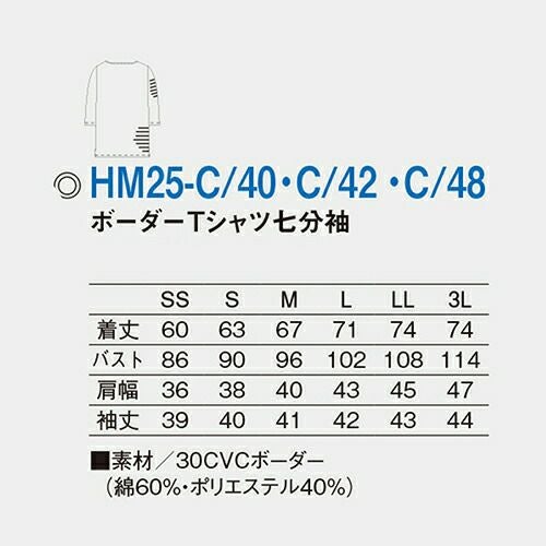 【メール便対応】ボーダーTシャツ 制服 ユニフォーム KAZEN カゼン 七分袖 HM25-40・48 飲食店 メンズ レディース 居酒屋 ラーメン屋 業務用 おしゃれ かわいい 可愛い かっこいい 吸汗 快適 ストレッチ 伸縮性