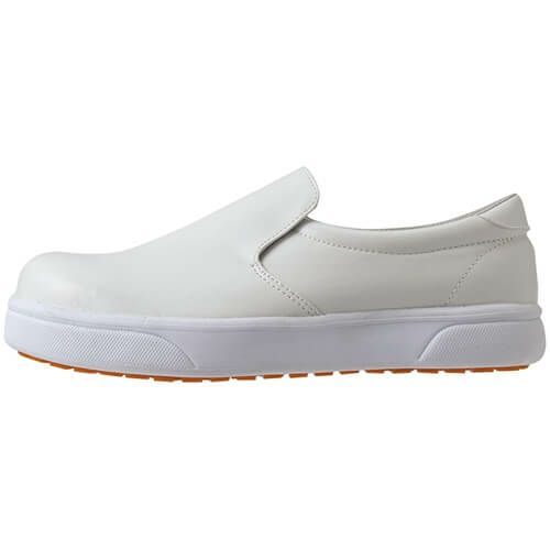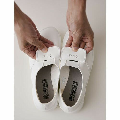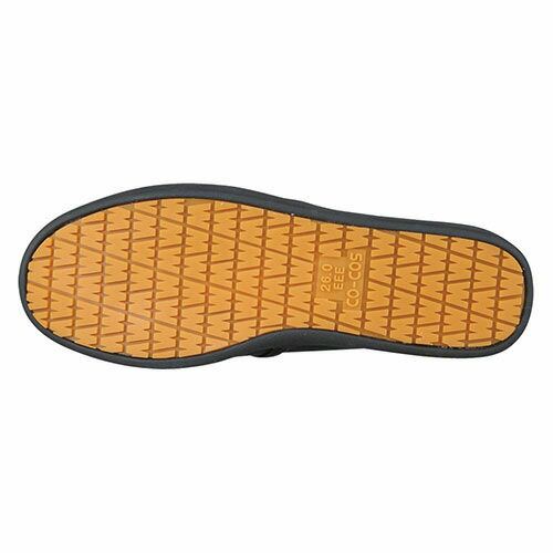 他の画像を見る コックシューズ 厨房シューズ 調理靴 靴 KAZEN カゼン 468-70・75 先芯あり ユニフォーム 制服 厨房 飲食店 レストラン カフェ 滑りにくい 合皮 軽量 軽い 通気性 業務用 フード 特別価格 ¥ 4,096 税込 「滑りにくい」・「快適設計」・「軽量設計」の3つの特長により、ハードなワークシーンを快適にサポートします。セーフティタイプ(つま先強化プラスチック入り)です。 タテ・横に刻んだ凸凹底で滑りにくさを強化しています。インソールについては、通気穴を設けた凸凹形状により、足との接地面積を少なくし、熱がこもりにくく、べったりした不快感がない爽やかな感触が特長です。そして、インソール裏の通気穴により足裏の通気性は大きく向上しており、衝撃吸収材の優れたクッション性により疲労度が大幅に軽減されます。 詳細を見る お気に入りに登録する