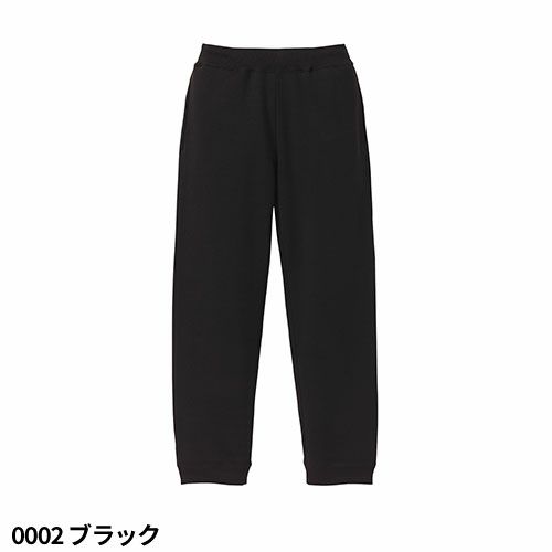 サイドポケットがあり、ウエスト部分は内側の丸ひもによって調節が可能、裾口はリブ仕様になっています。身頃とリブのつなぎ部分はまたぎ2本針ステッチが入っているのでカジュアルな印象。562001・561801・592801のスウェットトップスと上下セットアップを組むことが可能です。表糸は綿100%で毛玉ができにくいので、プリント加工に向いているのもポイント。