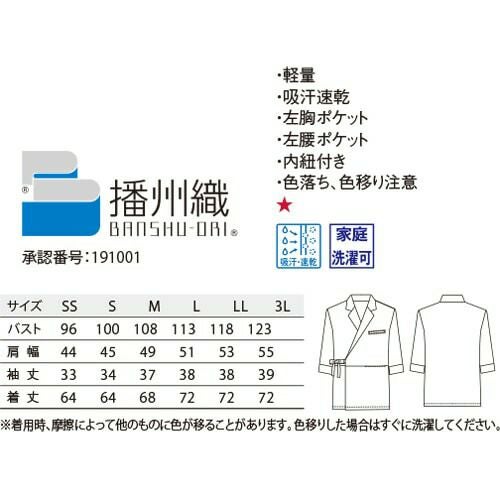 他の画像を見る シャツ 和風 制服 ユニフォーム 七分袖 ボンユニ BONUNI ボストン 和風シャツ 44307-17 飲食店 メンズ レディース 居酒屋 蕎麦屋 そば屋 うどん屋 屋台 ラーメン屋 おしゃれ かわいい かっこいい7分袖 男女兼用 カジュアル 特別価格 ¥ 6,593 税込 播州織 和紙デニム:軽い着心地で一年中心地よく過ごせる。夏は涼しく感じ、冬は暖かく感じる調温素材「和紙糸」を用いたデニムシリーズ 詳細を見る お気に入りに登録する