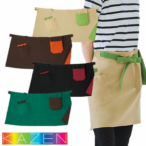 他の画像を見る 【メール便対応】エプロン 前掛 制服 ユニフォーム ショート丈 短め KAZEN カゼン リバーシブルエプロン(腰下) KZN492-62~67 飲食店 制服 ユニフォーム カフェ レストラン バー 居酒屋 ソムリエ 保育士 キッチン 厨房 丈夫 おしゃれ かわいい 可愛い かっこいい 汚れにくい 特別価格 ¥ 3,590 税込 表裏どちらでも使用できるリバーシブルエプロン。ポシェットとポケットを複合させた「ポシェポケ」と便利な3連ループ付。人にも地球にも優しい環境配慮型素材を使用 詳細を見る お気に入りに登録する