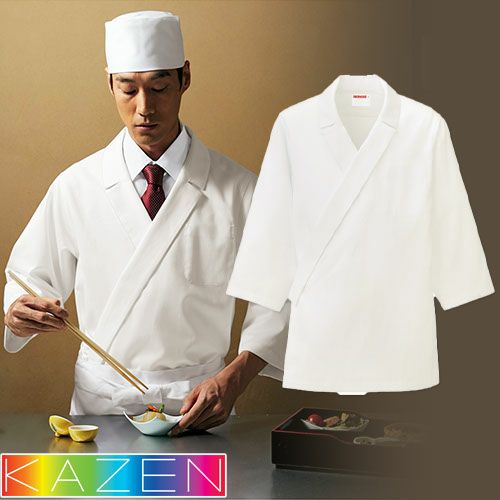 他の画像を見る 白衣 調理白衣 制服 ユニフォーム KAZEN カゼン 和食コート HM301-10 飲食店 厨房服 調理服 寿司屋 和食店 割烹 料亭 居酒屋 おしゃれ かっこいい プロ仕様7分袖 清潔 定番 特別価格 ¥ 6,493 税込 作務衣をテーラードカラーと融合させた粋な和食コート。腰をきっちりと前掛けで引き締めて、格式を重んじる空間に映えるスタイル。 詳細を見る お気に入りに登録する