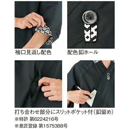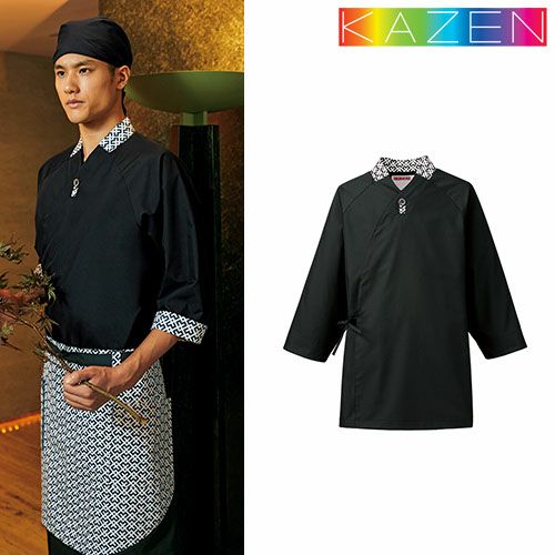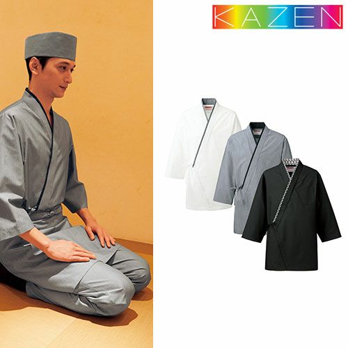 他の画像を見る 作務衣 和風 甚平 じんべい KAZEN カゼン 和風シャツ APK554-10・11 七分袖 飲食店 制服 ユニフォーム 居酒屋 旅館 和食店 蕎麦屋 割烹 業務用 おしゃれ かわいい 可愛い かっこいい 鯉口 イージーケア 特別価格 ¥ 5,347 税込 ゆとりを持ちながらも凛としたデザイン 前からは衿が無いように見え、後ろからはスタンドカラーに見える鯉口衿と、1本の垂直ラインのデザインにより、凛とした印象に。比翼ボタン仕様になっているうえ、ラグランスリーブや裾に入ったスリットで動きやすさにも配慮した、こだわりのゆとりあるデザインとなっています。 詳細を見る お気に入りに登録する