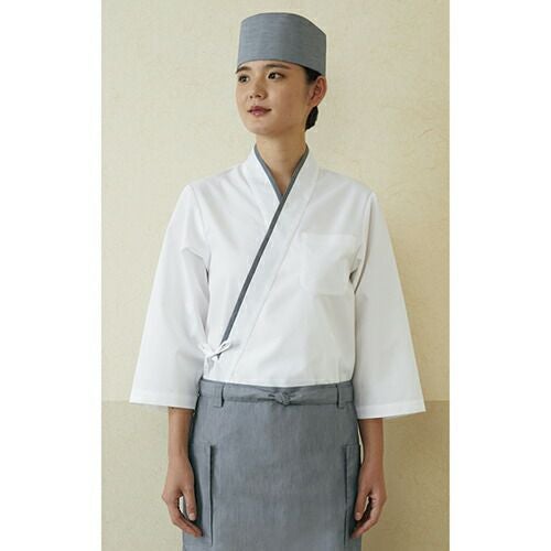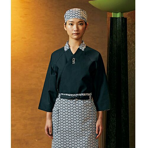 他の画像を見る 作務衣 和風 甚平 じんべい KAZEN カゼン 和風シャツ APK553-10・11 七分袖 飲食店 制服 ユニフォーム 居酒屋 旅館 和食店 蕎麦屋 割烹 業務用 おしゃれ かわいい 可愛い かっこいい 比翼 型くずれしにくい 特別価格 ¥ 5,462 税込 日本刀や月光を意識した、アシンメトリーな美しさ 2色使いで、アシンメトリーな美しさを提案する和風シャツスタイル。日本刀の曲線がモチーフの流麗なカーブ、三日月をかたどった彫刻風のボタンがアクセントの比翼仕立て。ボタンの位置、見え方にもミリ単位でこだわった一着。 詳細を見る お気に入りに登録する